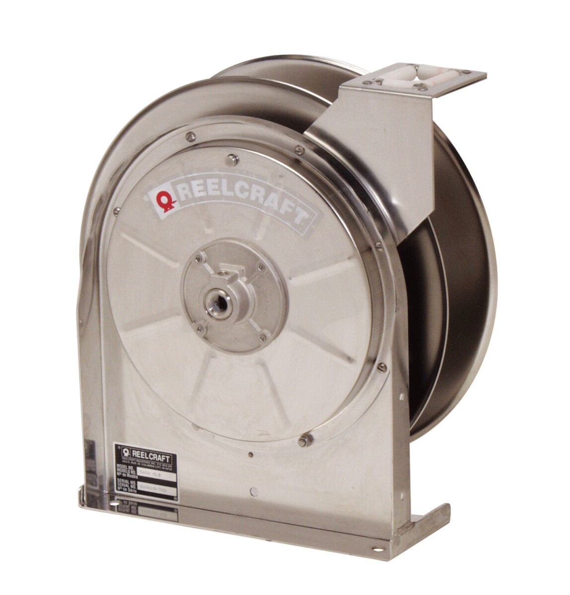 Reelcraft’s stainless steel hose reels are ideal for food processing, pre-rinse, wash down, chemical transfer, and industrial solvent handling. Also suitable for coastal, offshore, and on-board ships in marine applications where the harsh environment of salt water spray requires the use of stainless hose reels. Swivel includes Viton O-rings. Note: Reel includes stainless steel latch parts and fluid path.