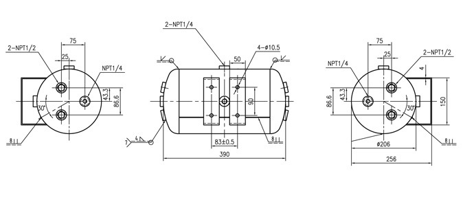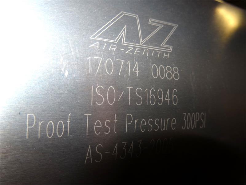 Air-Zenith 3-gallon 300psi burst proof air tank. Made with aircraft grade aluminum, ISO/AS certified.