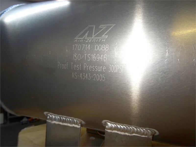 AIR-ZENITH 5-gallon 300psi burst proof air tank. Made with aircraft grade aluminum, ISO/AS certified.